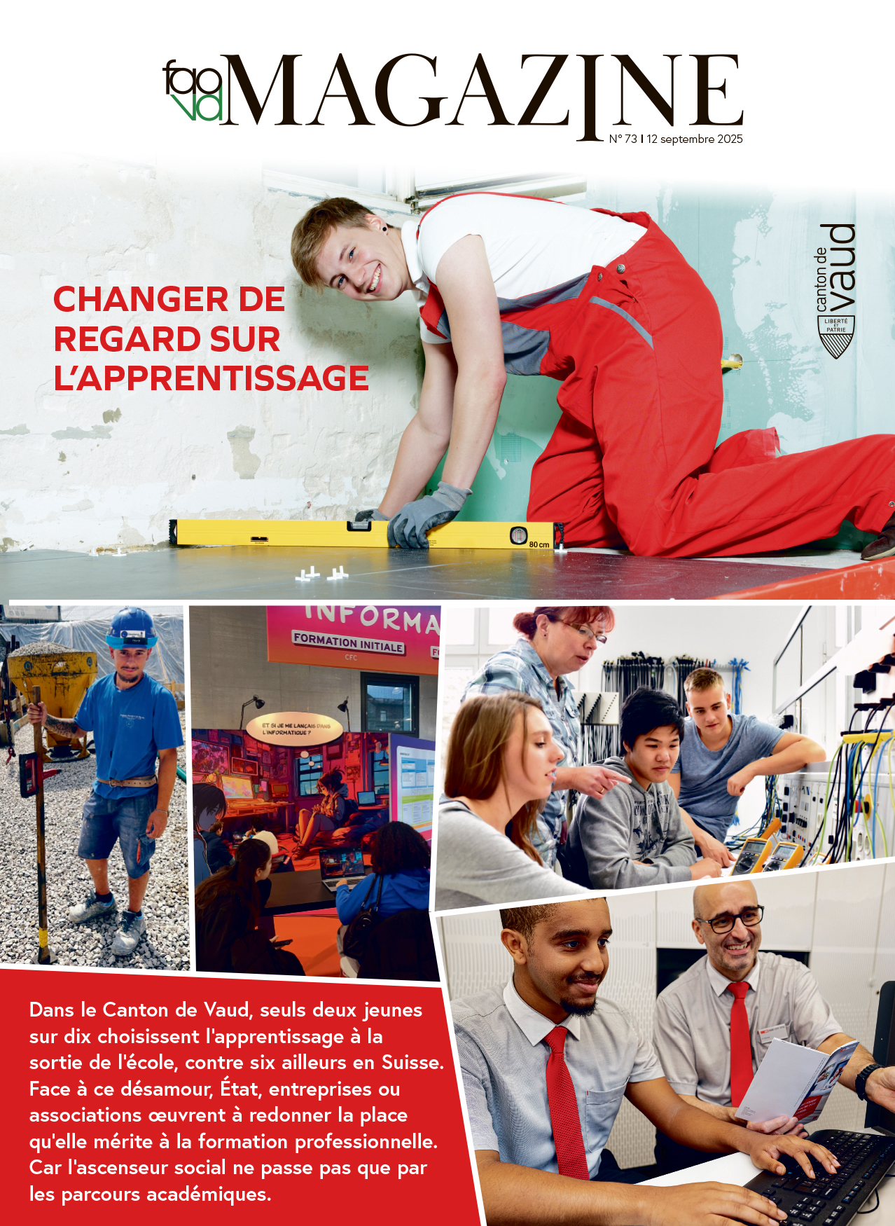Dans le Canton de Vaud, seuls deux jeunes sur dix choisissent l’apprentissage à la sortie de l’école, contre six ailleurs en Suisse. Face à ce désamour, État, entreprises ou associations œuvrent à redonner la place qu’elle mérite à la formation professionnelle. Car l’ascenseur social ne passe pas que par les parcours académiques.