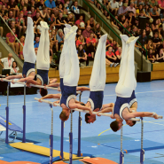 Cette discipline regroupe l’ensemble des agrès utilisés en gymnastique artistique, incluant les anneaux, la barre fixe, les barres parallèles, le saut au mini trampoline et le sol. Les gymnastes doivent maîtriser chacun de ces engins et enchaîner des exercices combinant force, souplesse, équilibre et agilité. La diversité des agrès exige une préparation complète et une grande capacité d’adaptation. L’évaluation repose sur la fluidité des mouvements, la difficulté des figures et la précision de l’exécution.